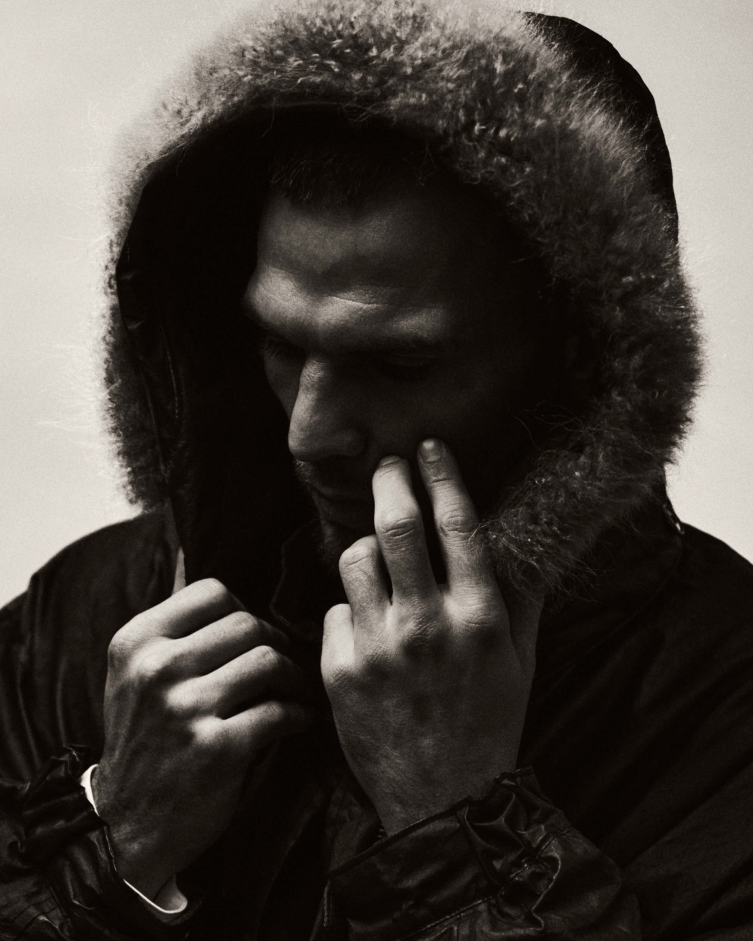COMOLIPAPER LEATHER MILITARY HOODED COAT C03-04007 Black