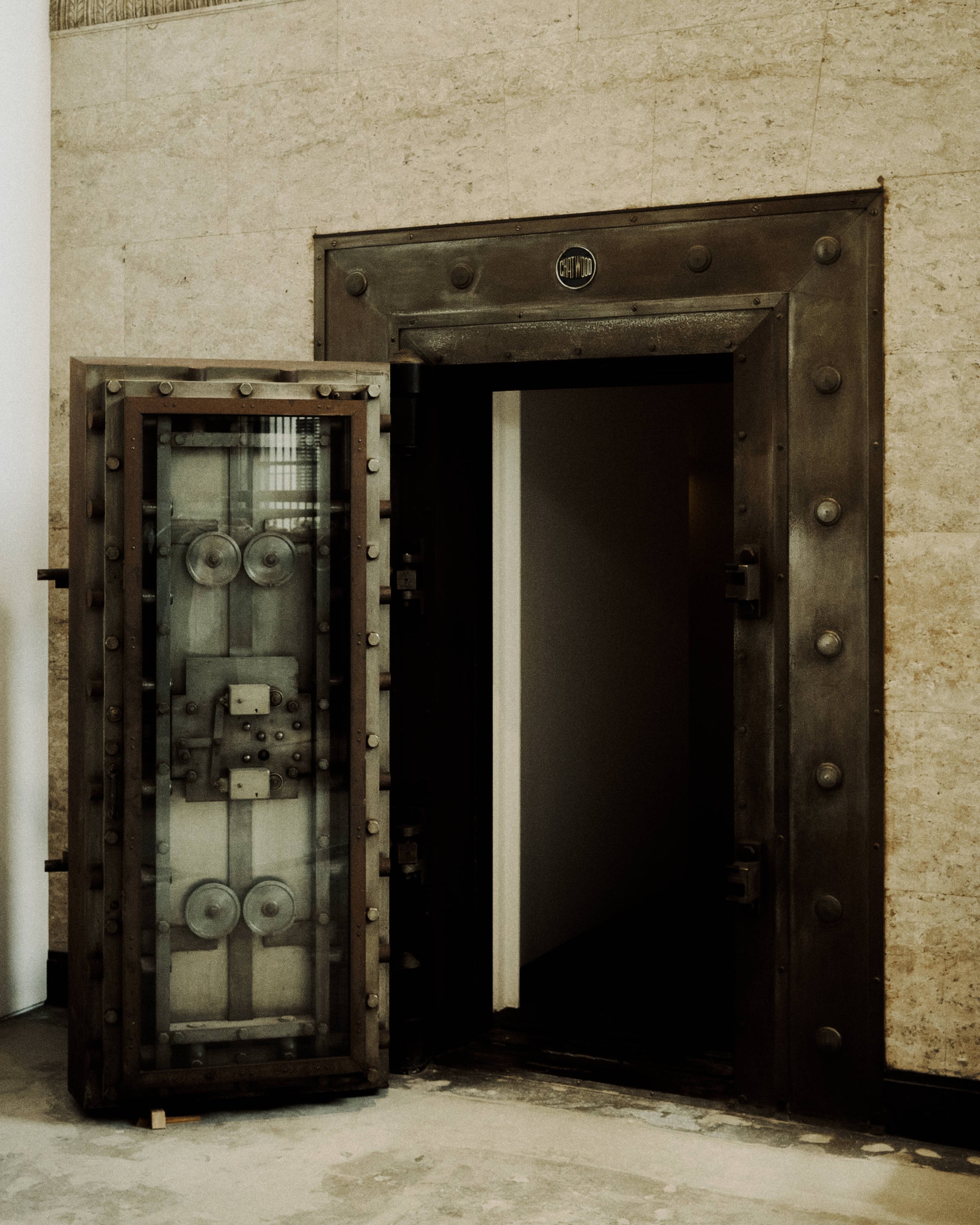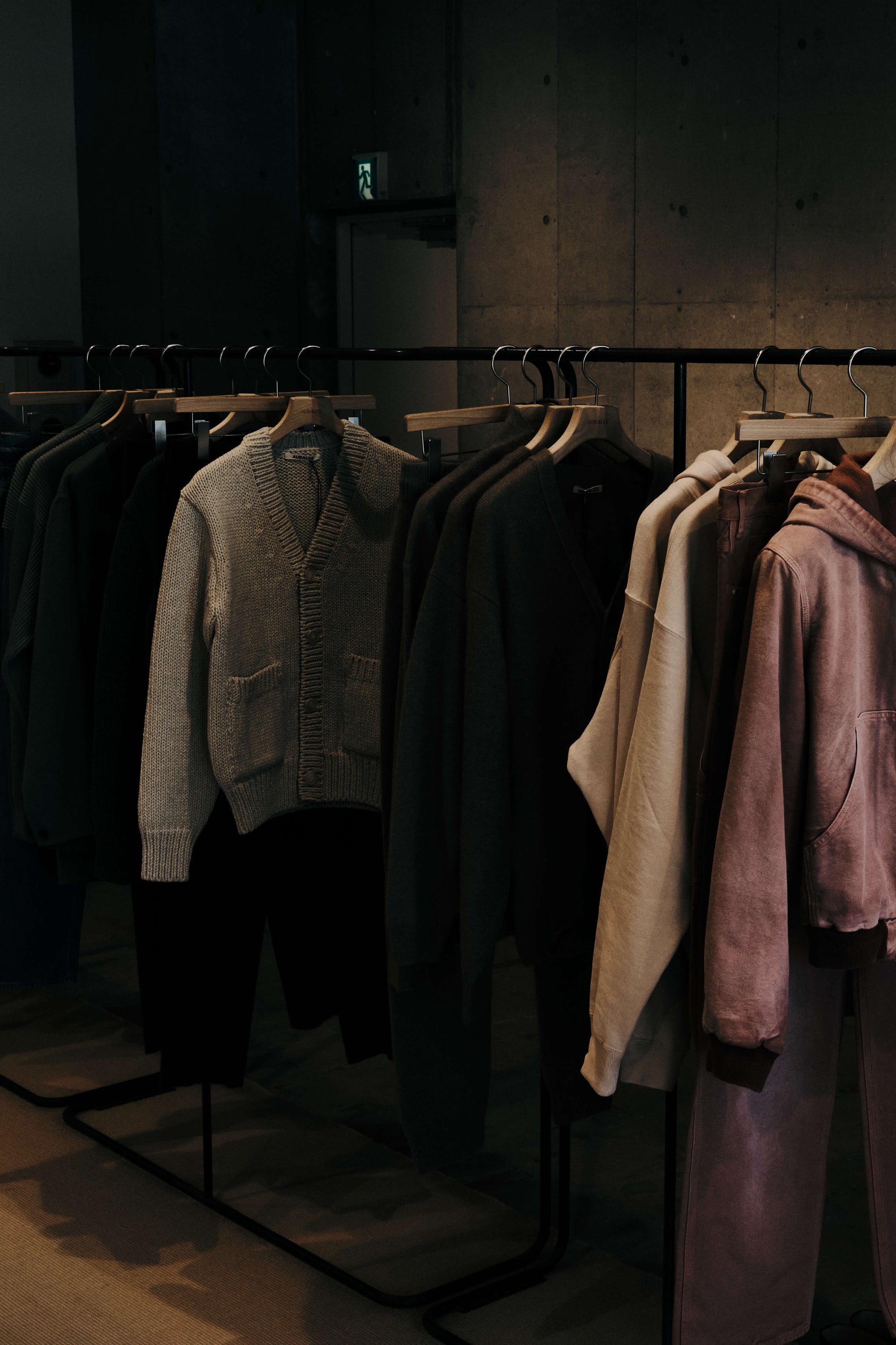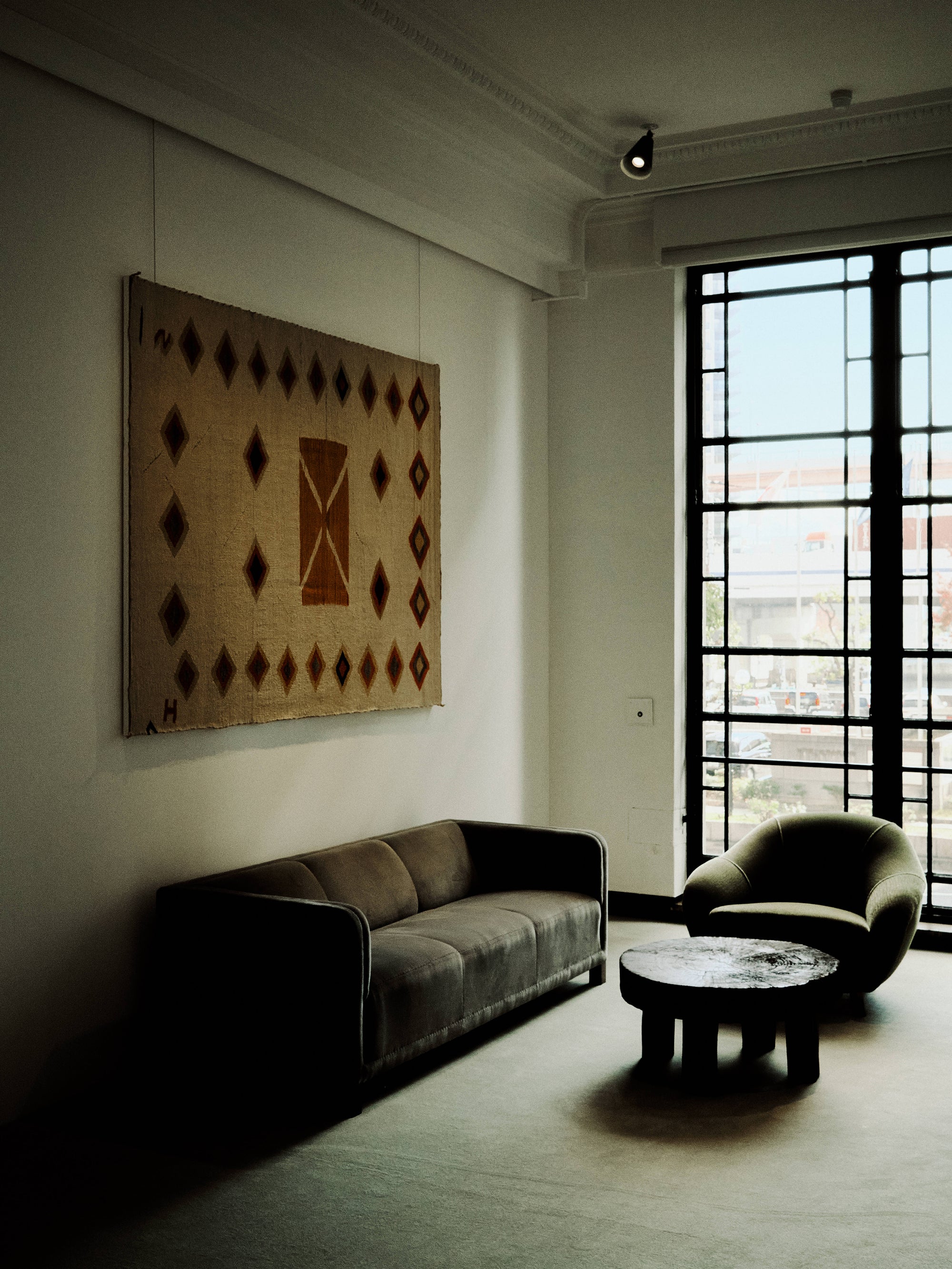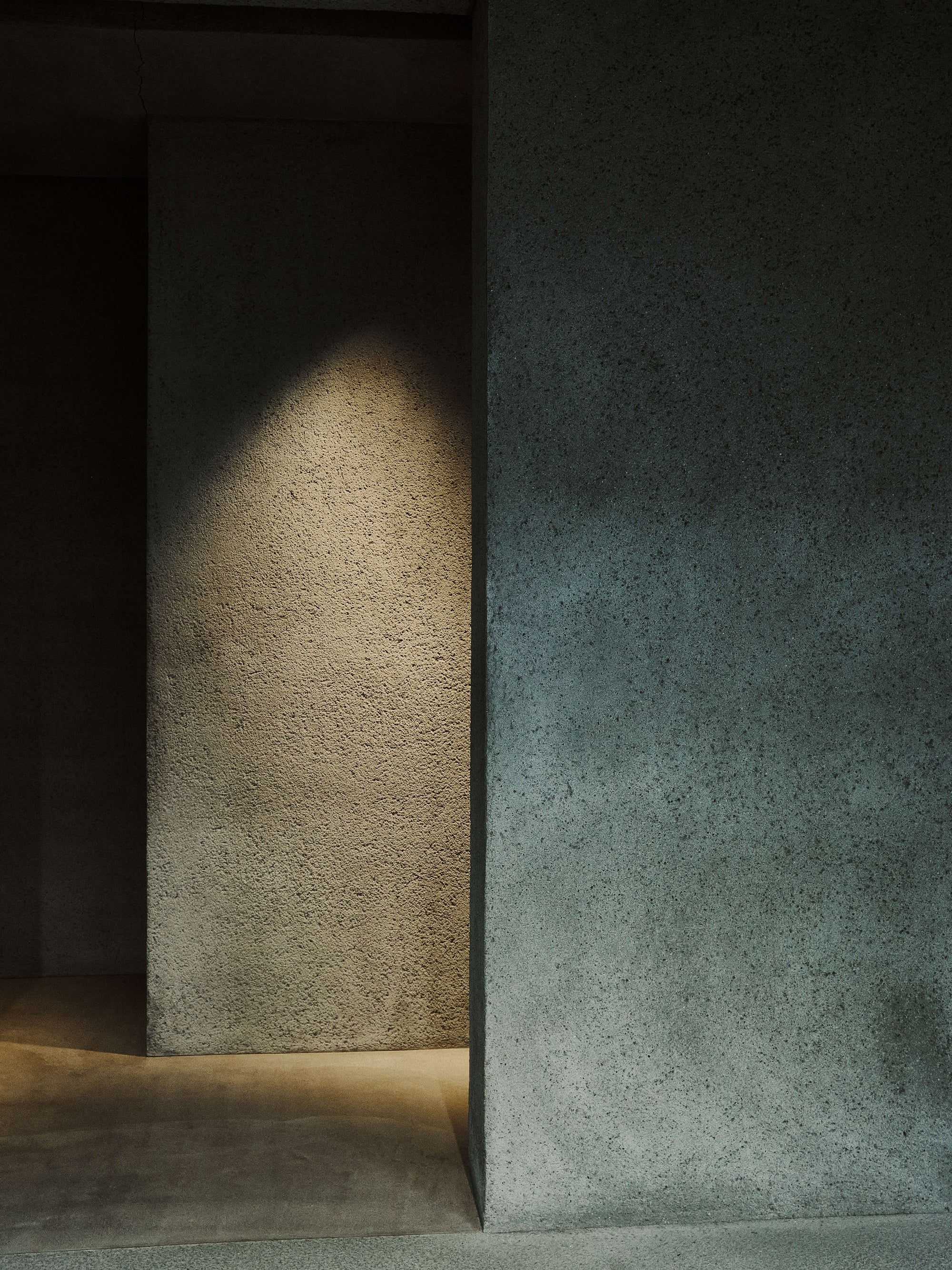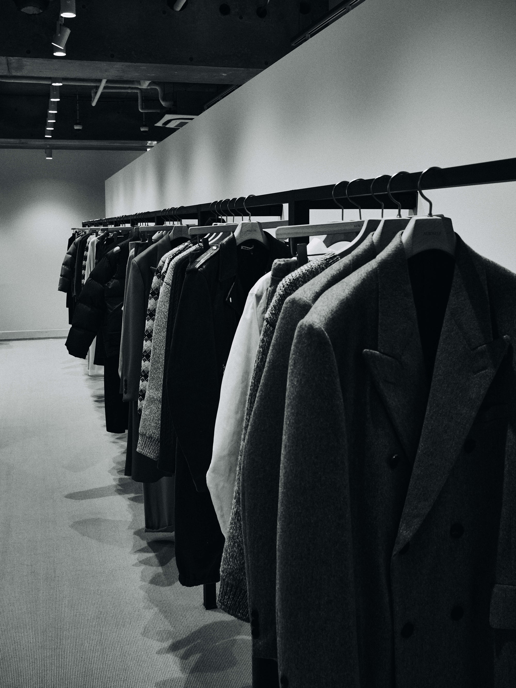 The WMV VISVIM KOBE store is housed in the former Kobe branch of Chartered Bank, located inside the historic 1938 Chartered Building. Its original rotating wooden door and stately façade preserve the character of the old foreign-settlement district. Inside, the soaring two-story atrium, vertical windows, and untouched stone and concrete surfaces reveal the building’s past with an honest, architectural gravity. visvim’s interventions — from hand-crafted wooden fixtures to 1930s-inspired lighting and traditional “naguri” timber details — are added with precision and restraint. The result is a space where heritage and contemporary craftsmanship coexist in quiet harmony.