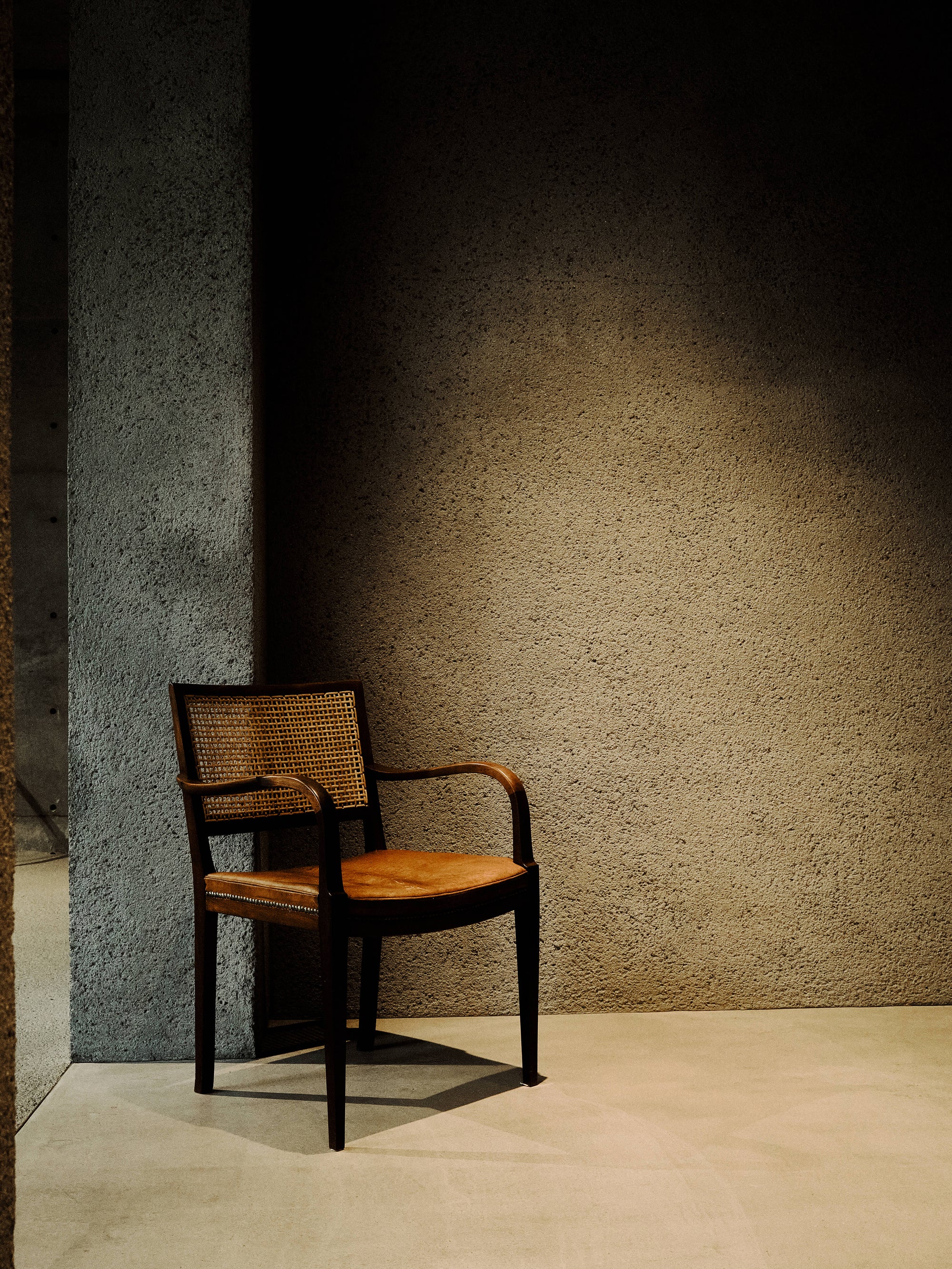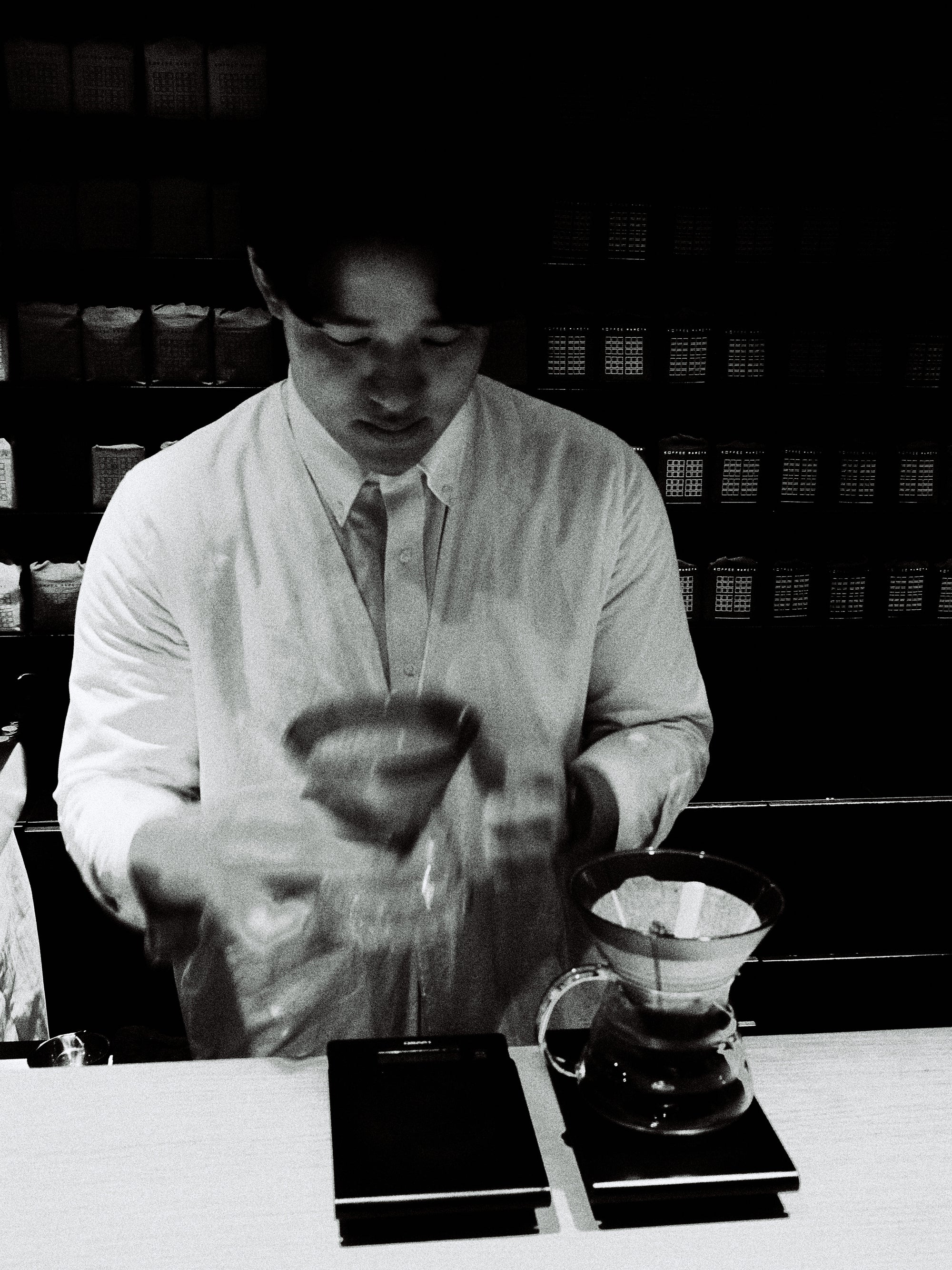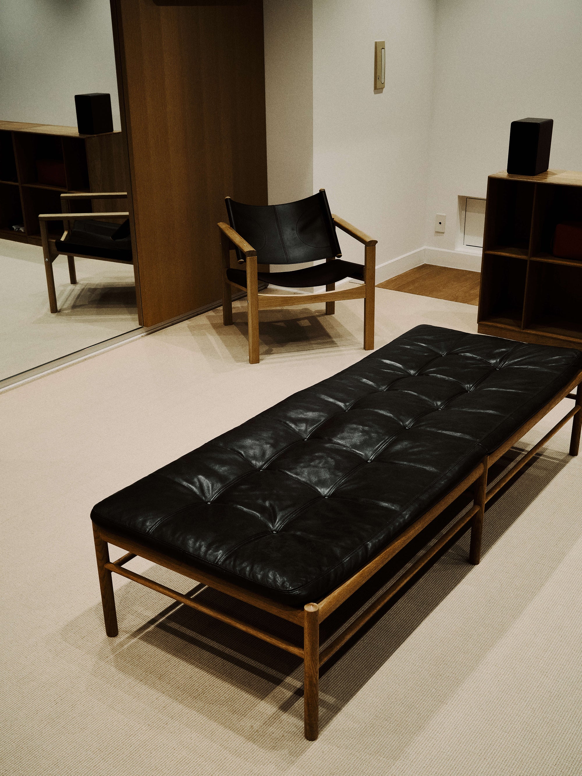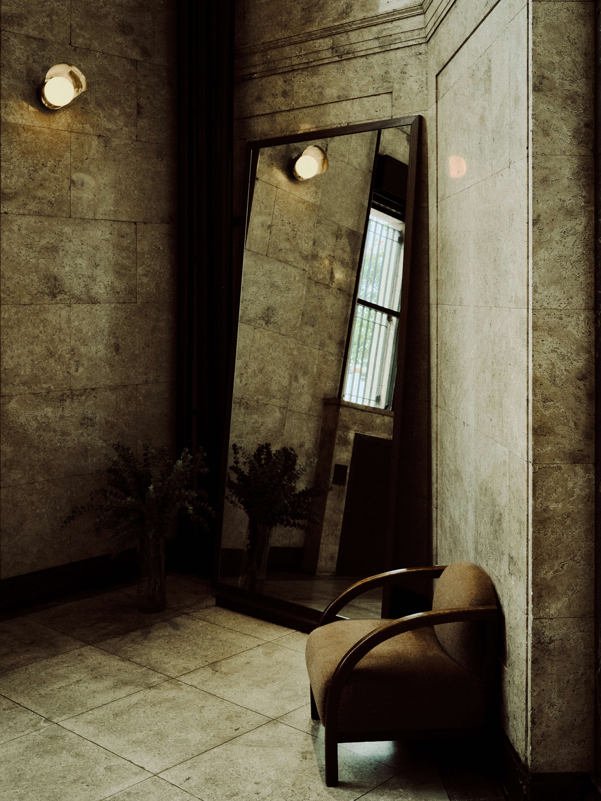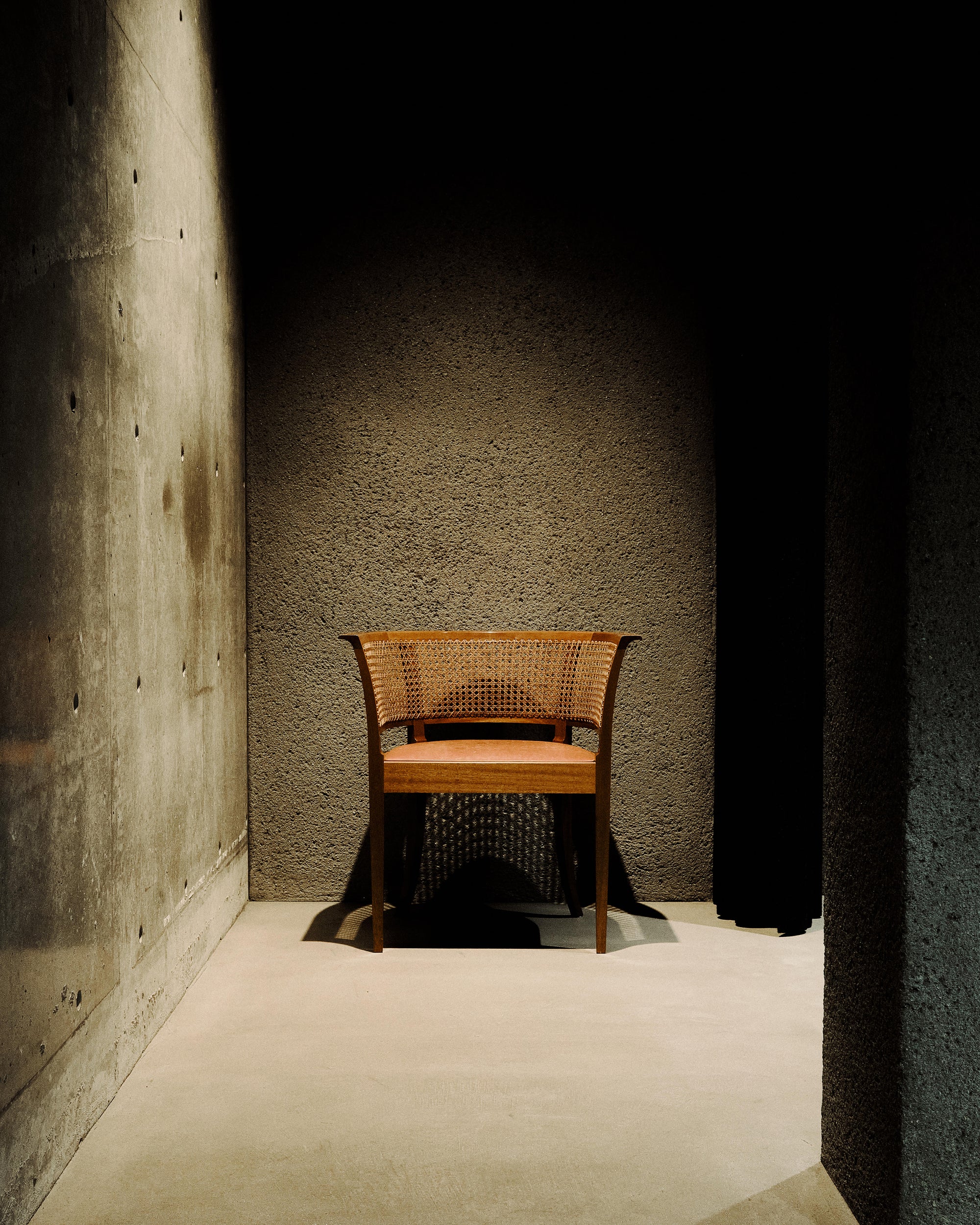 The WMV VISVIM KOBE store is housed in the former Kobe branch of Chartered Bank, located inside the historic 1938 Chartered Building. Its original rotating wooden door and stately façade preserve the character of the old foreign-settlement district. Inside, the soaring two-story atrium, vertical windows, and untouched stone and concrete surfaces reveal the building’s past with an honest, architectural gravity. visvim’s interventions — from hand-crafted wooden fixtures to 1930s-inspired lighting and traditional “naguri” timber details — are added with precision and restraint. The result is a space where heritage and contemporary craftsmanship coexist in quiet harmony.