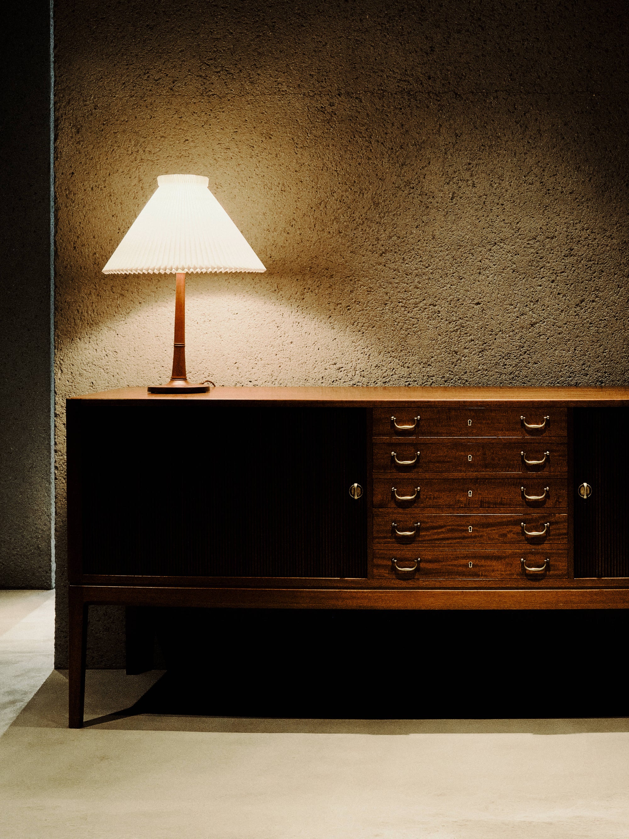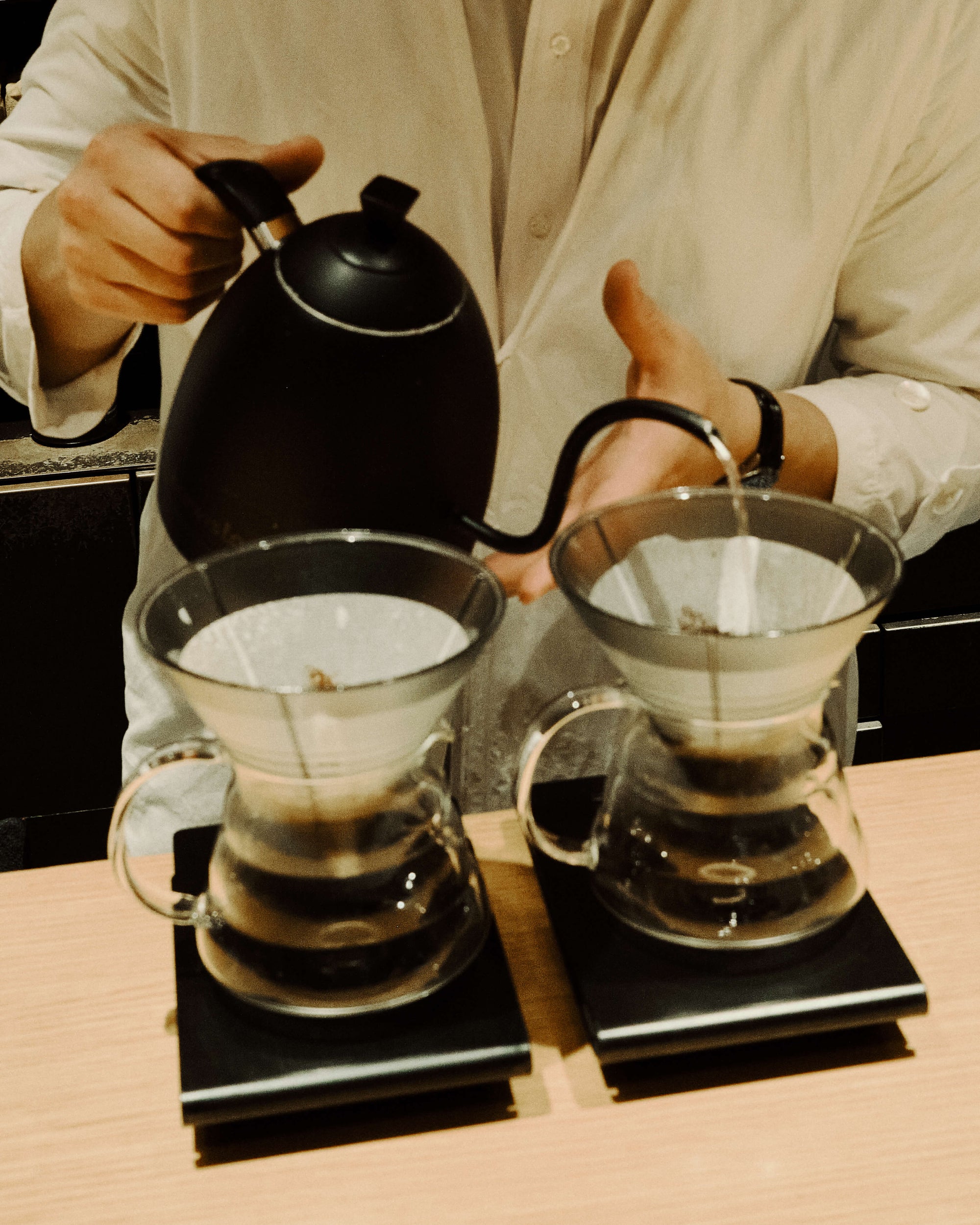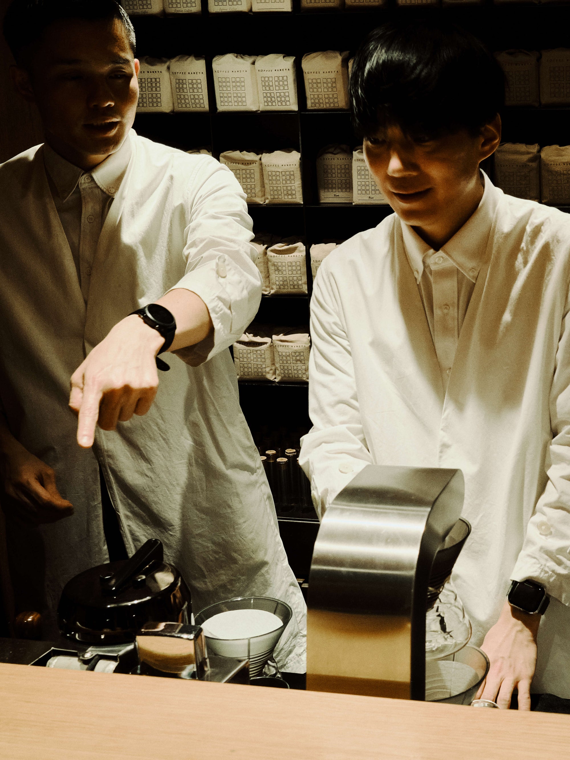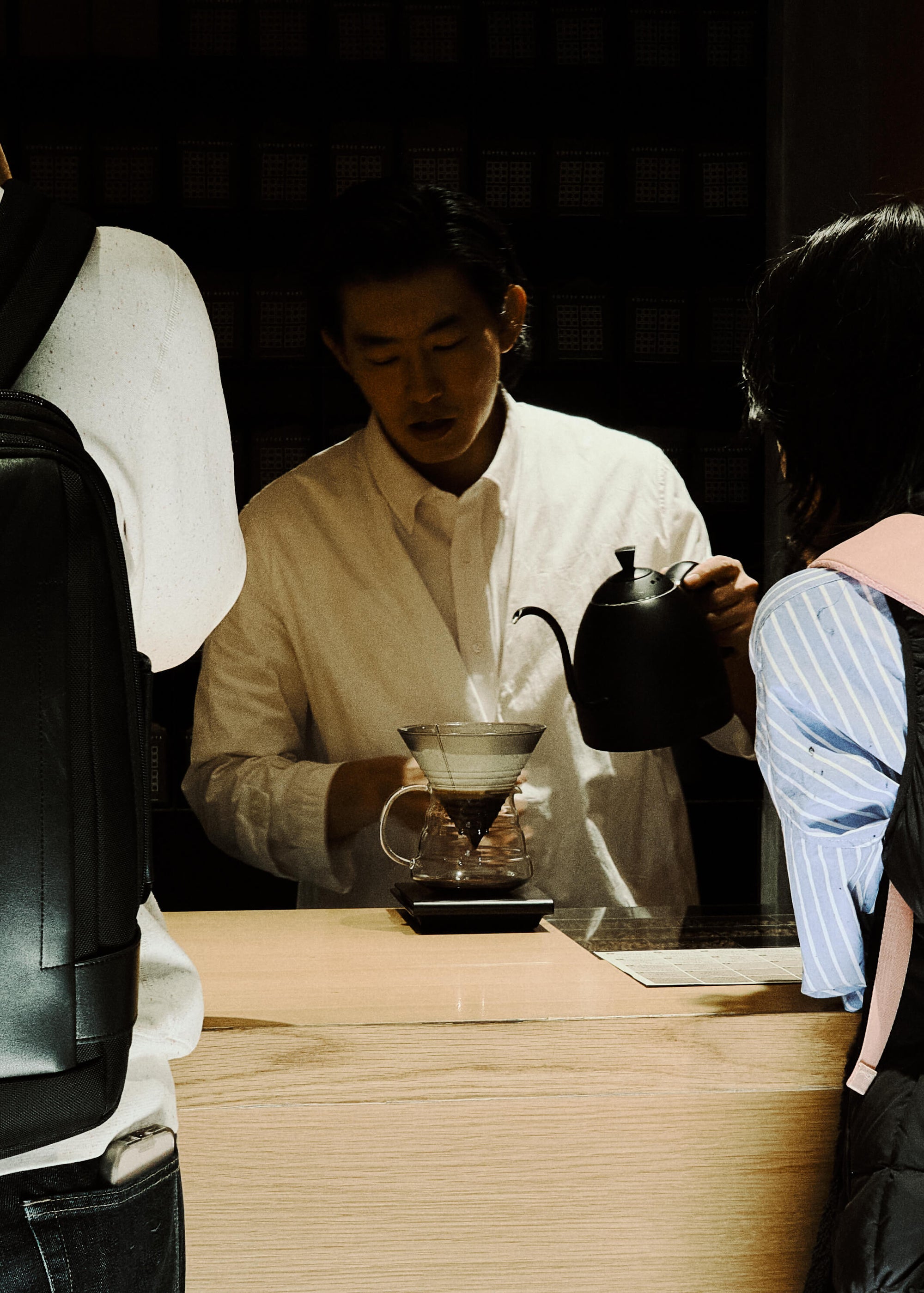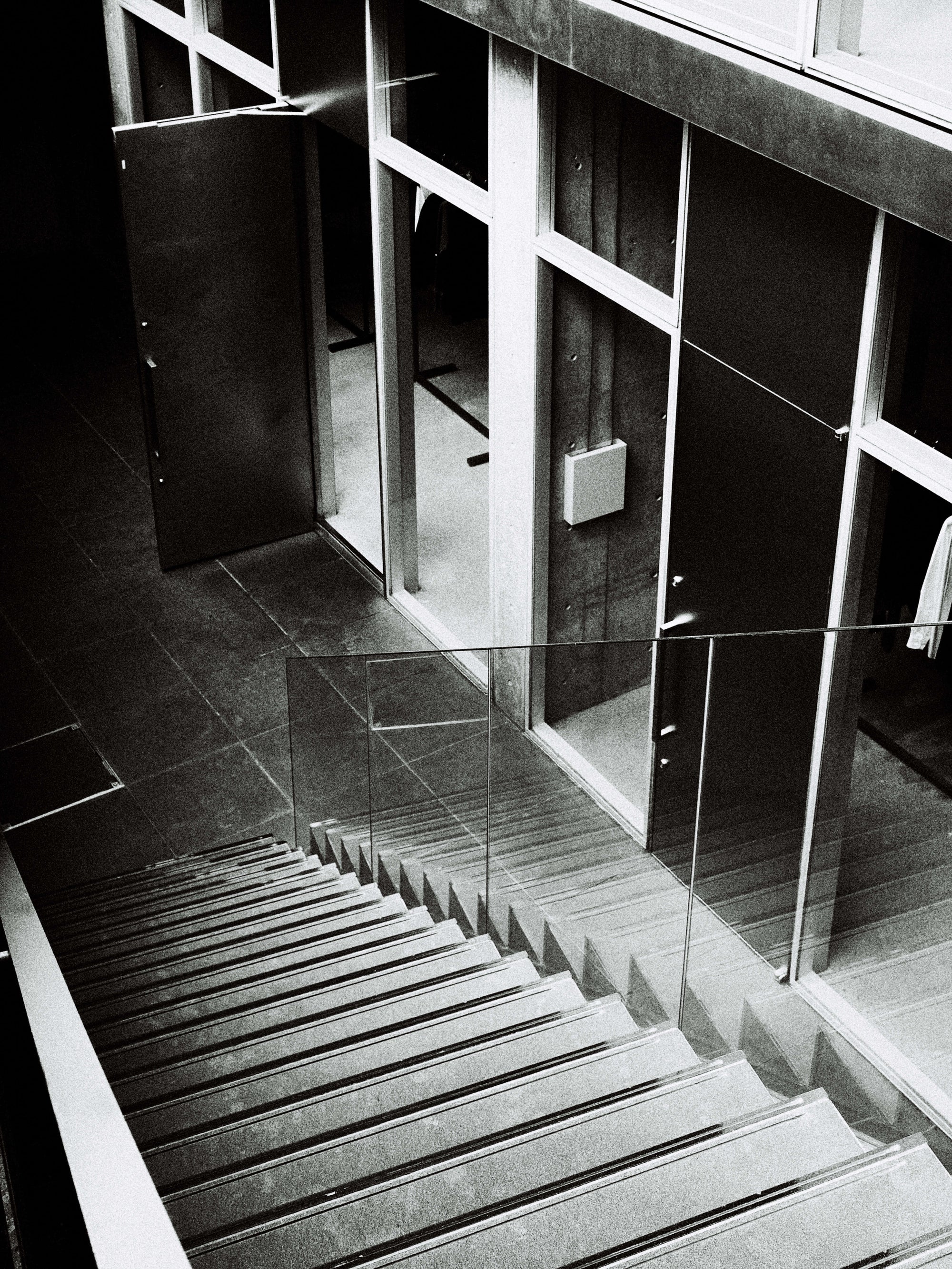 The WMV VISVIM KOBE store is housed in the former Kobe branch of Chartered Bank, located inside the historic 1938 Chartered Building. Its original rotating wooden door and stately façade preserve the character of the old foreign-settlement district. Inside, the soaring two-story atrium, vertical windows, and untouched stone and concrete surfaces reveal the building’s past with an honest, architectural gravity. visvim’s interventions — from hand-crafted wooden fixtures to 1930s-inspired lighting and traditional “naguri” timber details — are added with precision and restraint. The result is a space where heritage and contemporary craftsmanship coexist in quiet harmony.
