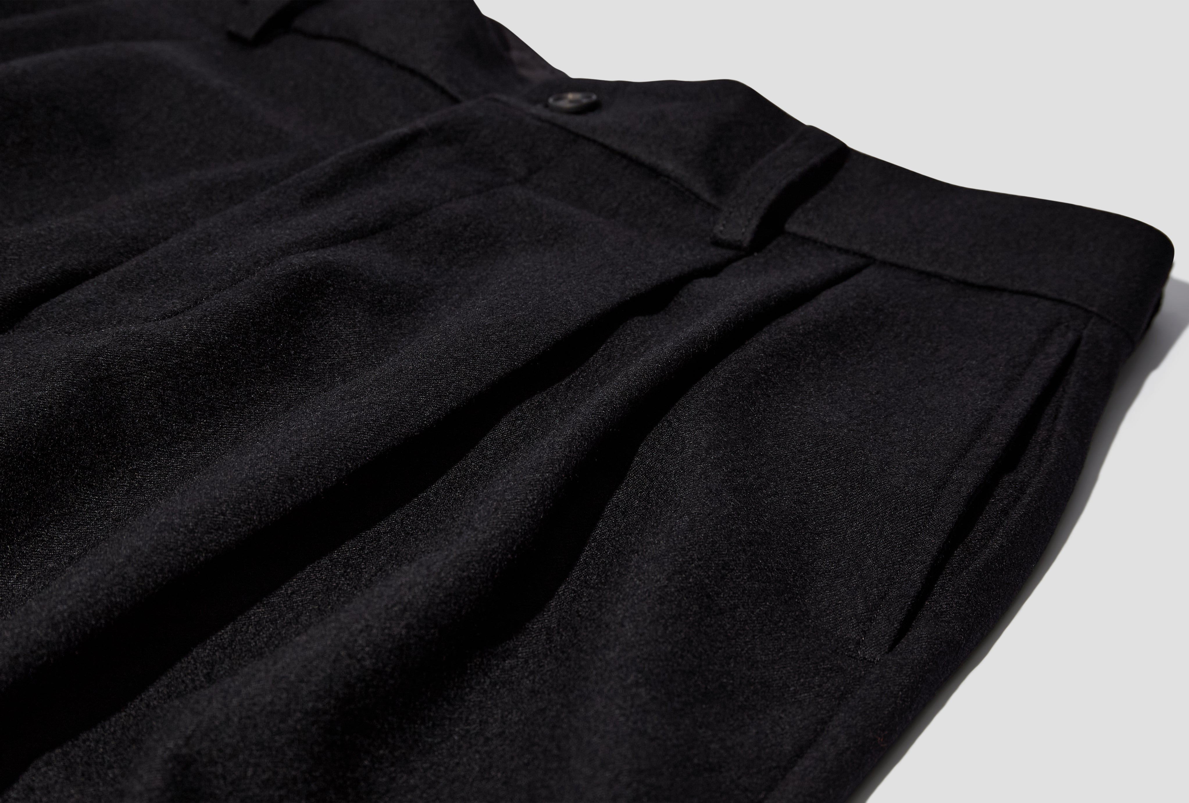 WOOL FLANNEL LONG WIDE TROUSERS ST.1258 Black